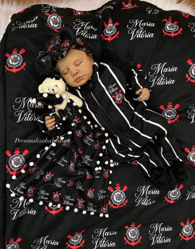 Seu bebê só nasce uma vez, e a saída da maternidade é um dos momentos mais emocionantes da sua vida. Com o nome do seu bebê e o símbolo do Corinthians, cada peça se torna uma lembrança exclusiva.